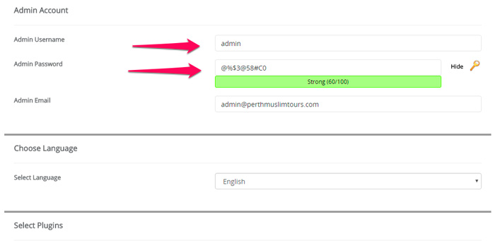 9. Pada bahagian Admin Account: