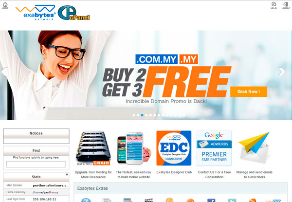 Selepas anda membuat bayaran kepada pihak server provider, anda akan diberikan maklumat untuk login ke Cpanel seperti link ke Cpanel, username dan password.