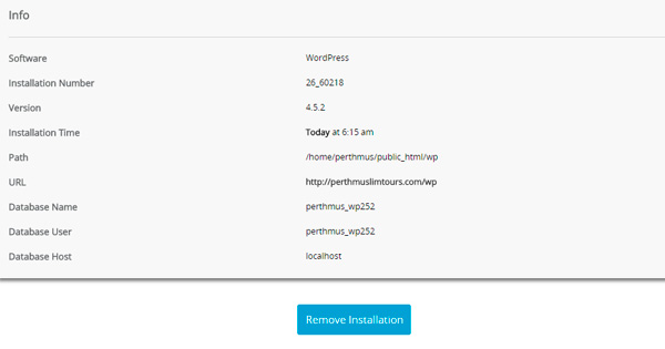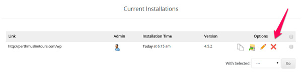 3. Namun, target kita adalah dibawah itu. Terdapat satu bahagian bertajuk Current Installation yang memaparkan nama domain yang telah di-install dengan wordpress.