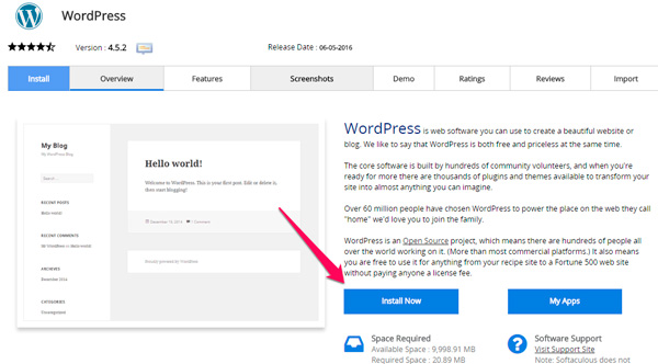 2. Scroll ke bahagian softaculous Apps Installer dan klik pada icon WordPress. Paparan untuk install wordpress akan muncul.
