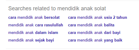 Untuk melakukan ini, anda harus google keyword utama anda, scroll ke bawah dan lihat pada bahagian carian yang berkaitan.