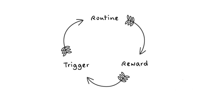 | Rutin | Ini adalah perbuatan spesifik yang kita lakukan (atau elakkan jika kita sedang menghentikan tabiat ini) sebaik sahaja dicetuskan oleh pencetus tadi. |