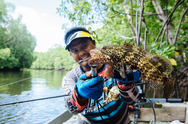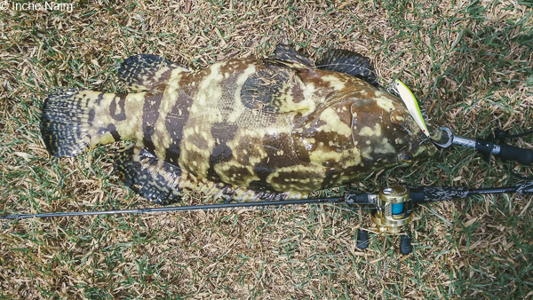 Apa yang mengejutkan, ikan kerapu pula yang menyambar gewang itu. Hari itu saya berjaya mendaratkan sehingga 5 ekor kerapu hybrid yang bersaiz ‘gadang’ dengan persembahan gewang yang sama. Tidak termasuk yang terlucut akibat matakail kangkang!