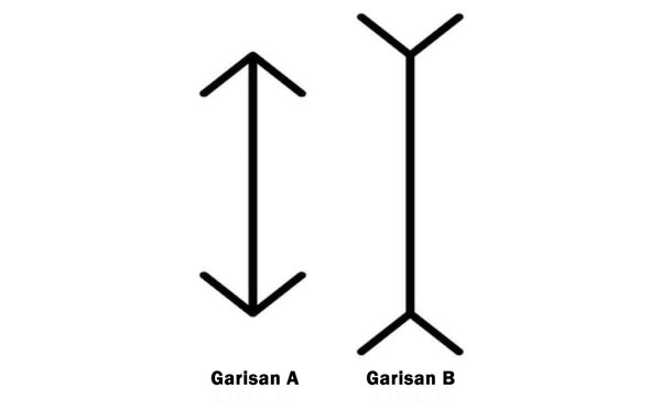 Sebenarnya, kedua-kedua garisan ini adalah sama panjang (ilusi Müller-Lyer).
