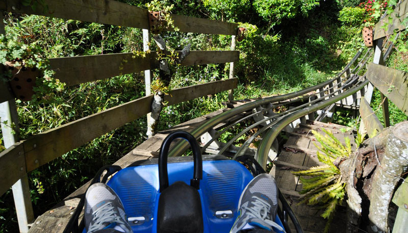 Anda boleh sampai ke kawasan jeram sama ada dengan berjalan kaki atau menaiki bobsled yang mengujakan.