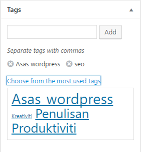 Begitu juga dengan fungsi tags pada sesuatu laman blog.