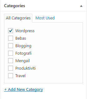 Ada perlu mengelaskan setiap post yang anda tulis kepada kategori tertentu. (anda juga boleh mengelaskan satu post tersebut kepada beberapa kategori)
