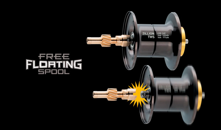 Floating spool adalah sistem unik daiwa mengapungkan spool secara bebas dan berasingan dari shaft pinion gear