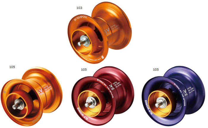 - 103 – Adalah pilihan pertama spool cetek untuk saiz 100. Digunakan untuk mencapai prestasi lontaran yang cemerlang menggunakan gewang yang ringan pada TDZ, Alphas dan Steez. Spesifikasi muatan tali → 12lb/110m