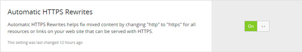 Dalam tab yang sama juga, skrol sehingga jumpa bahagian yang bertajuk “Automatic HTTPS Rewrites” dan tukar kepada ON.