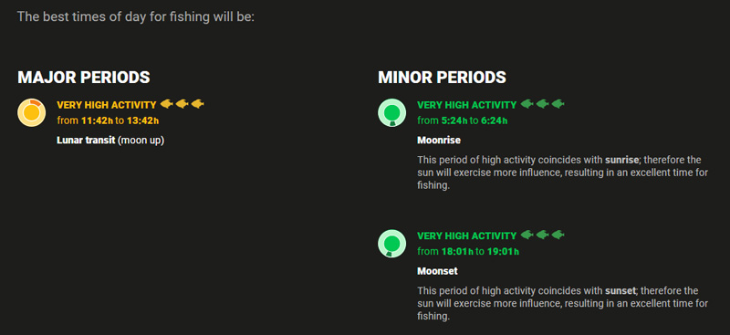 Apabila major period kebetulan jatuh pada 30 minit hingga sejam sebelum matahari terbit atau terbenam, ia akan meningkatkan aktiviti makan ikan dengan hebat.